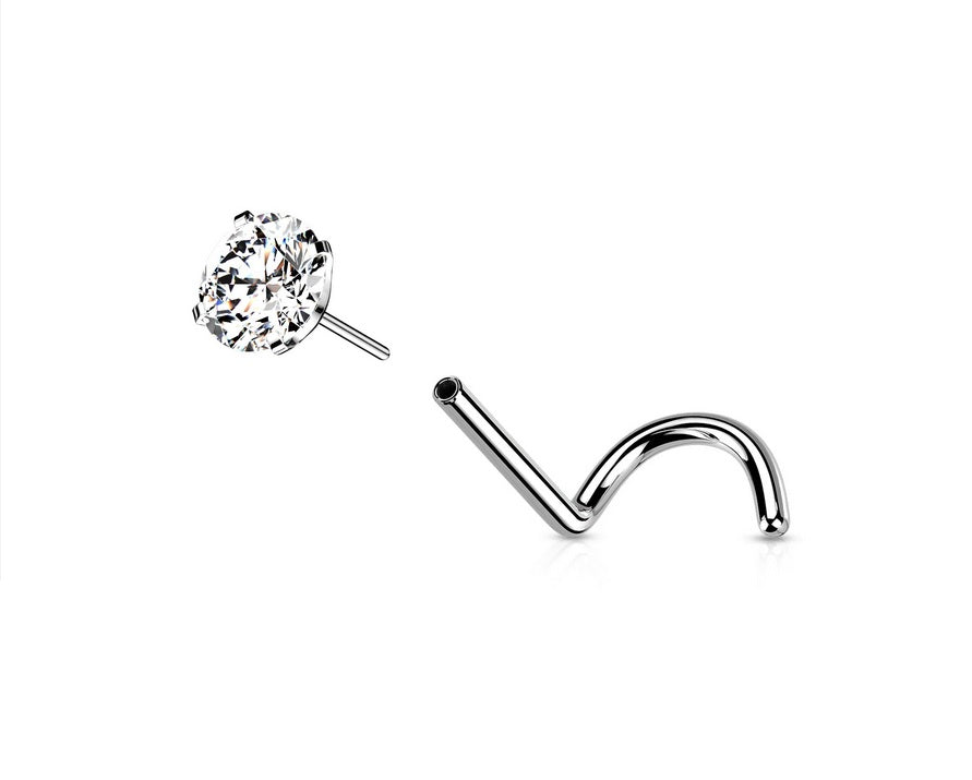 Titanium High Polish Crystal Jewelled Prong Set Curved Nose Threadless Base - TT301