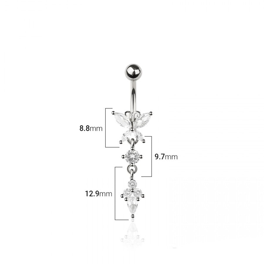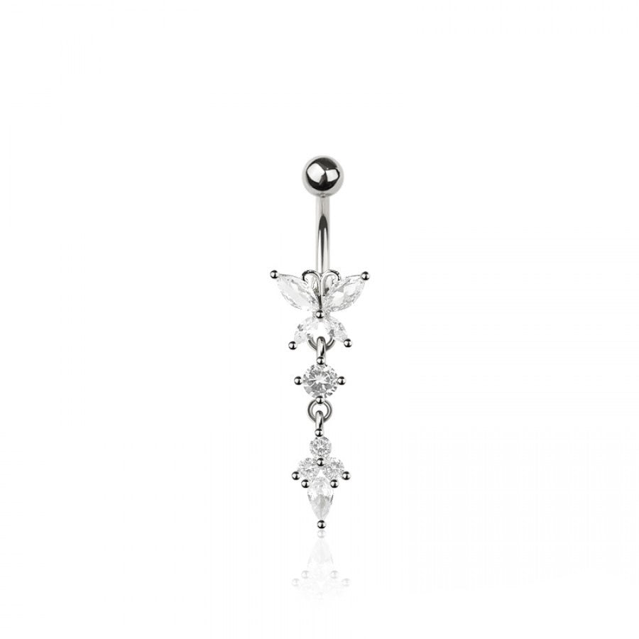 SS316L Jewelled Butterfly Marquise and Round CZ Dangle Fancy Banana Bar - 577
