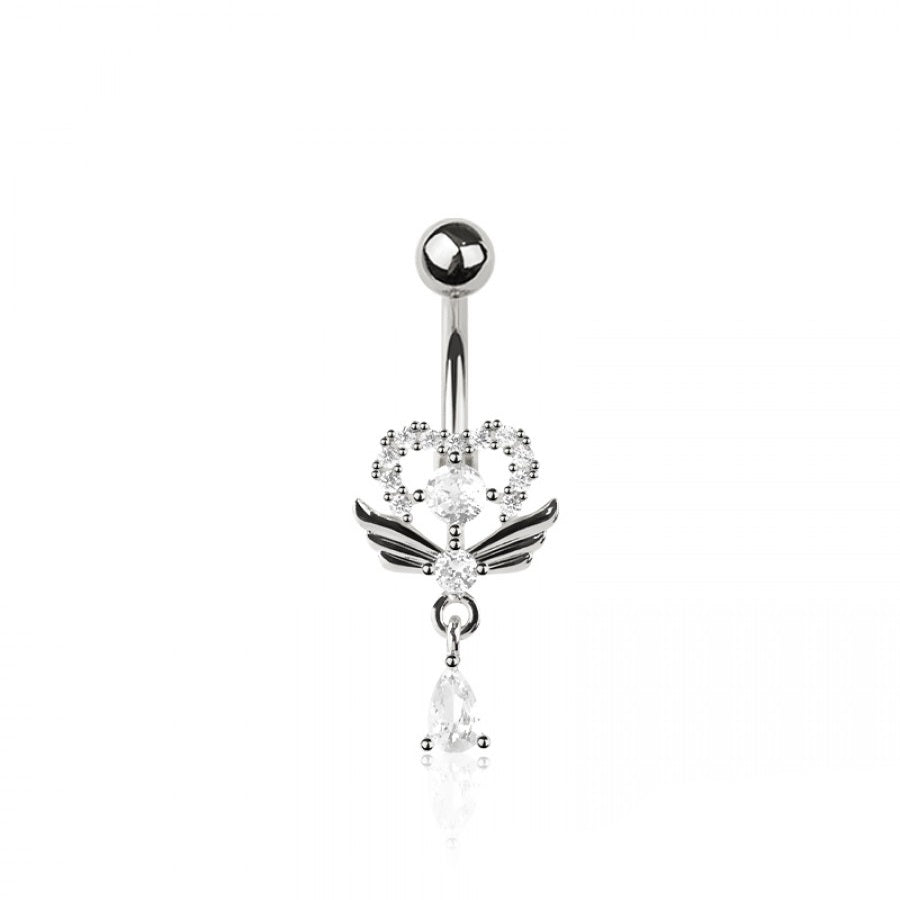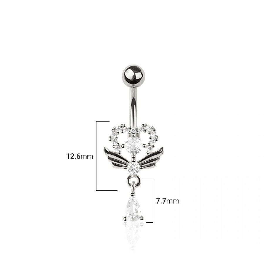 SS316L Jewelled Wing Heart Fancy Banana Bar with CZ Teardrop Dangle - 580